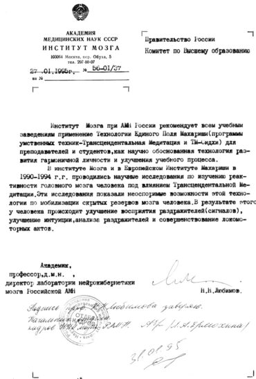 Эксперты о ТМ Обращение Института океанологии РАН: Технология Махариши в учебном процессе Обучение ТМ20 января, 2018