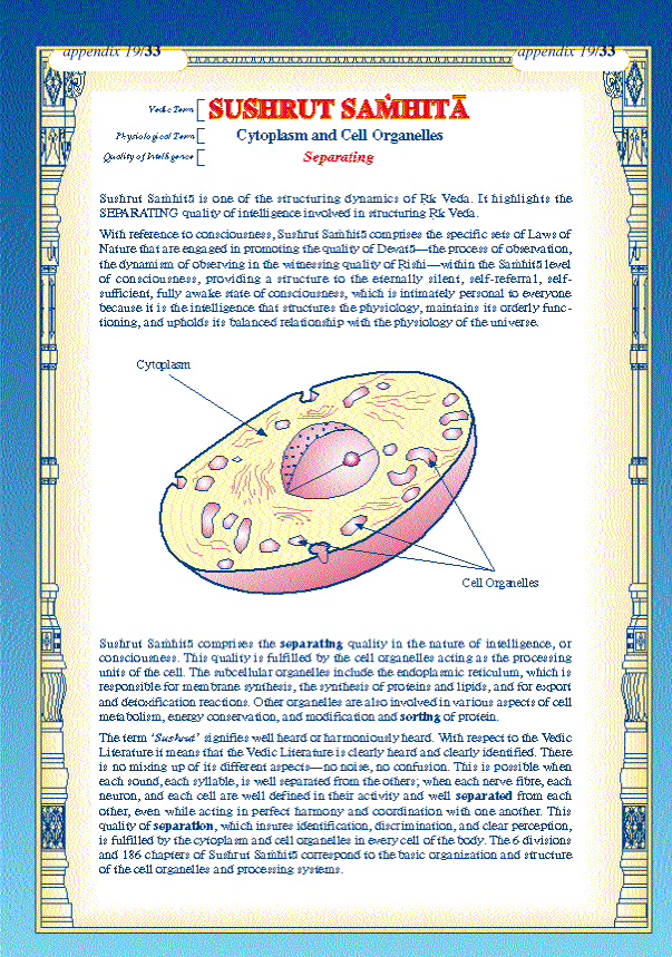 “В физиологии Сушрута Самхита представлена клеточной цитоплазмой и клеточными органеллами.