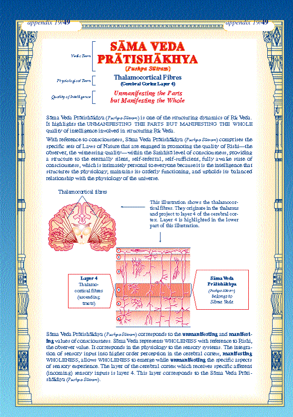 Слой коры головного мозга, который получает специфические афферентные (входящие) сенсорные входы, называется слоем IV. Этот слой соответствует Сама Веда Пратишакхья“.