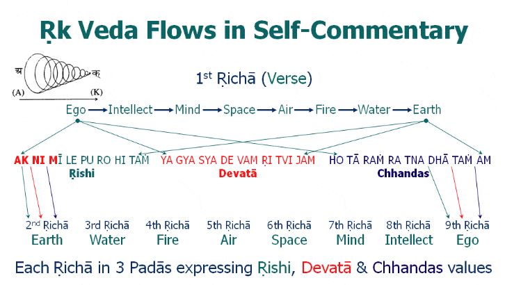 Благодаря Apaurusheya Bhasya Махариши мы знаем, что вся Веда содержится во всех её уровнях формирования. Если Веда является выражением всех Законов Природы, и если девять грах представляют все Законы Природы, тогда, безусловно, знание девяти грах должно содержаться на всех уровнях выражения Рик Веды. Как мы узнали ранее, все знания Рик Веды представлены в компактной форме в первой букве, первом слоге, первом слове, первой паде, первой сукте и первой мандале.