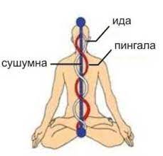 Принцип внутреннего разрежения воздуха отвечает за его протекание вдоль этого тончайшего нерва, который очень важен для работы всей нервной системы. Вот так очищается Сушумна. И есть отдельная теория, которая все это описывает, и говорит о «Кундалини». Когда канал очищается, тогда Кундалини, которая является индивидуальной жизненной силой и находится в основании позвоночника, начинает пробуждаться все сильнее. И когда она полностью пробудится, она с силой поднимается сюда.