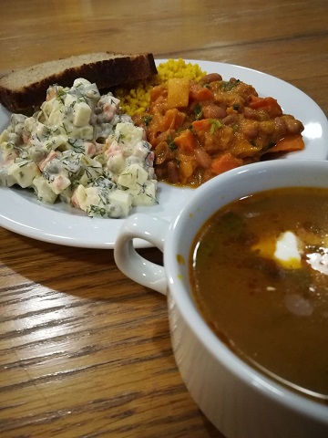Питание – это отдельная история. Повара Дениса Тайшина нам просто послала Богиня Махалакшми. Было всё очень вкусно и разнообразно. Денис пёк замечательный хлеб, готовил сам сладости. Все были благодарны за такой подарок Природы.