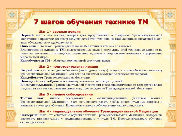 7 шагов обучения Трансцендентальной Медитации